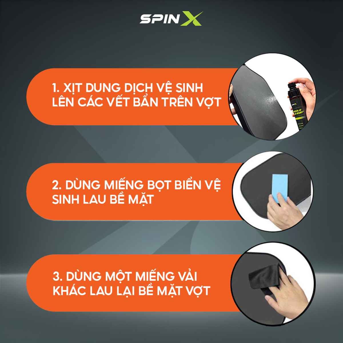 Chỉ với vài thao tác đơn giản, SPINX giúp loại bỏ mồ hôi, bụi bẩn, dầu mỡ và cả những mảnh vụn li ti – trả lại cho vợt vẻ ngoài tinh tươm và cảm giác cầm nắm “chuẩn mực” nhất.