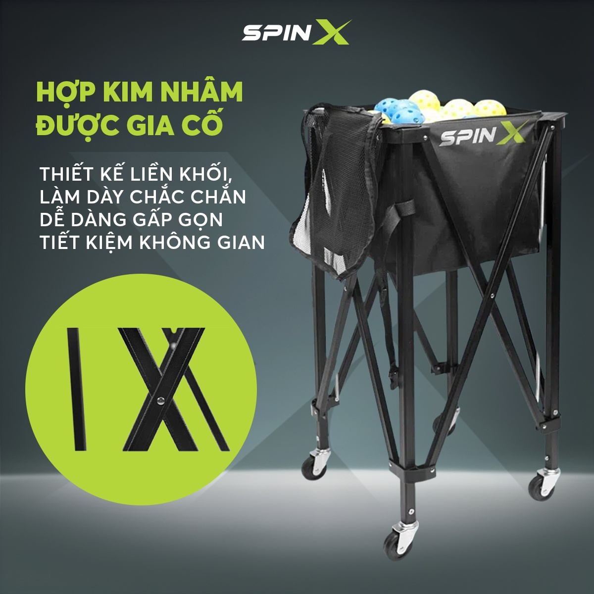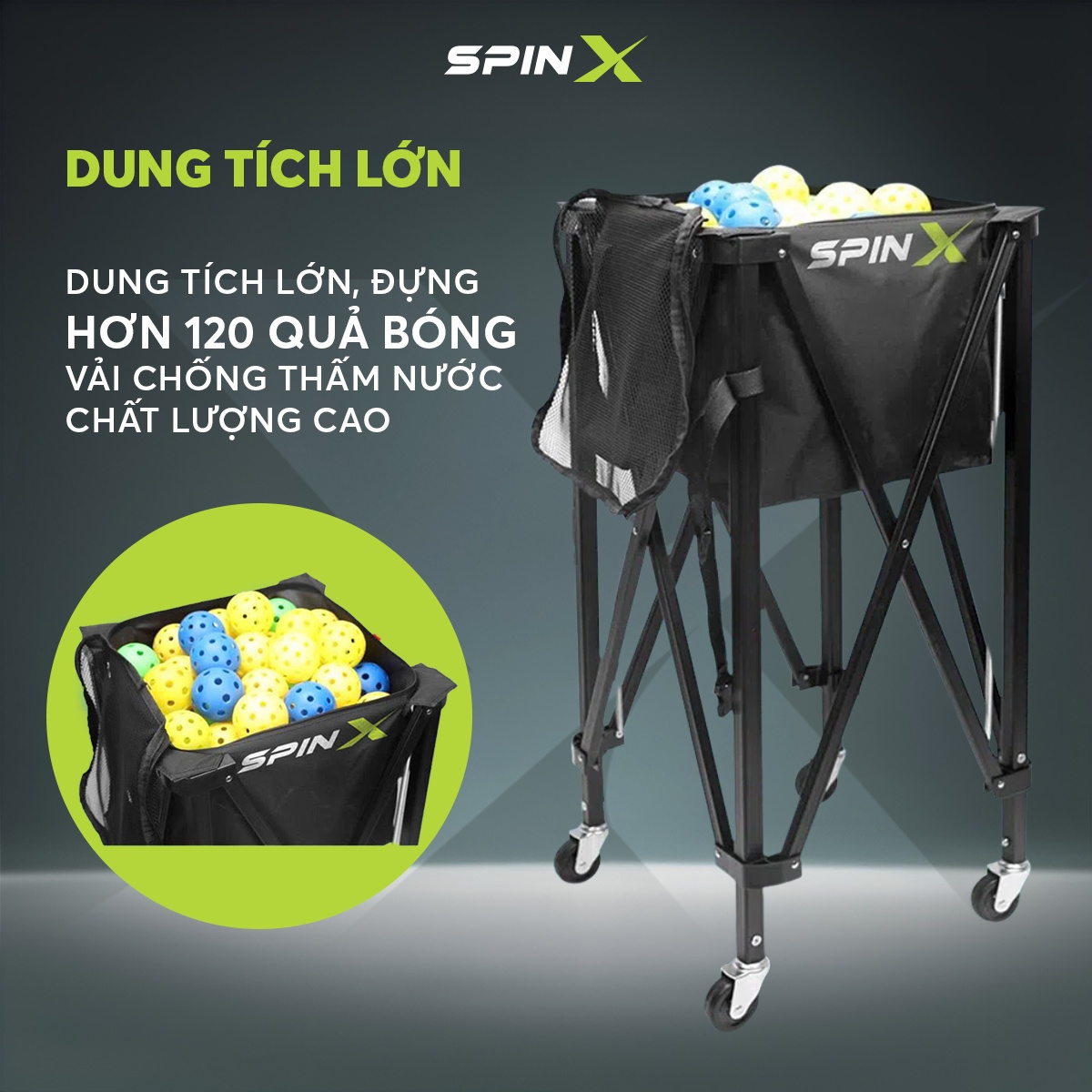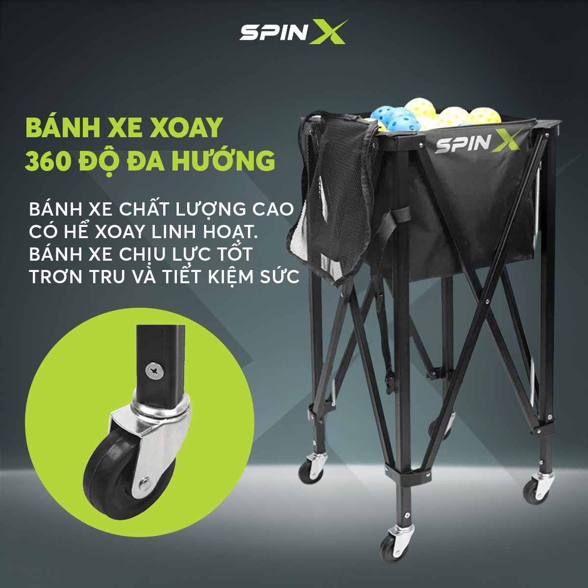 SpinX ra đời để giải quyết triệt để vấn đề này. Không chỉ đơn giản là một chiếc xe đẩy bóng, SpinX được thiết kế như một “trợ thủ sân tập” – vừa thu gom, vừa chứa đựng, vừa di chuyển linh hoạt, giúp bạn dồn trọn năng lượng vào những gì quan trọng nhất: kỹ thuật – tốc độ – và sự tập trung.